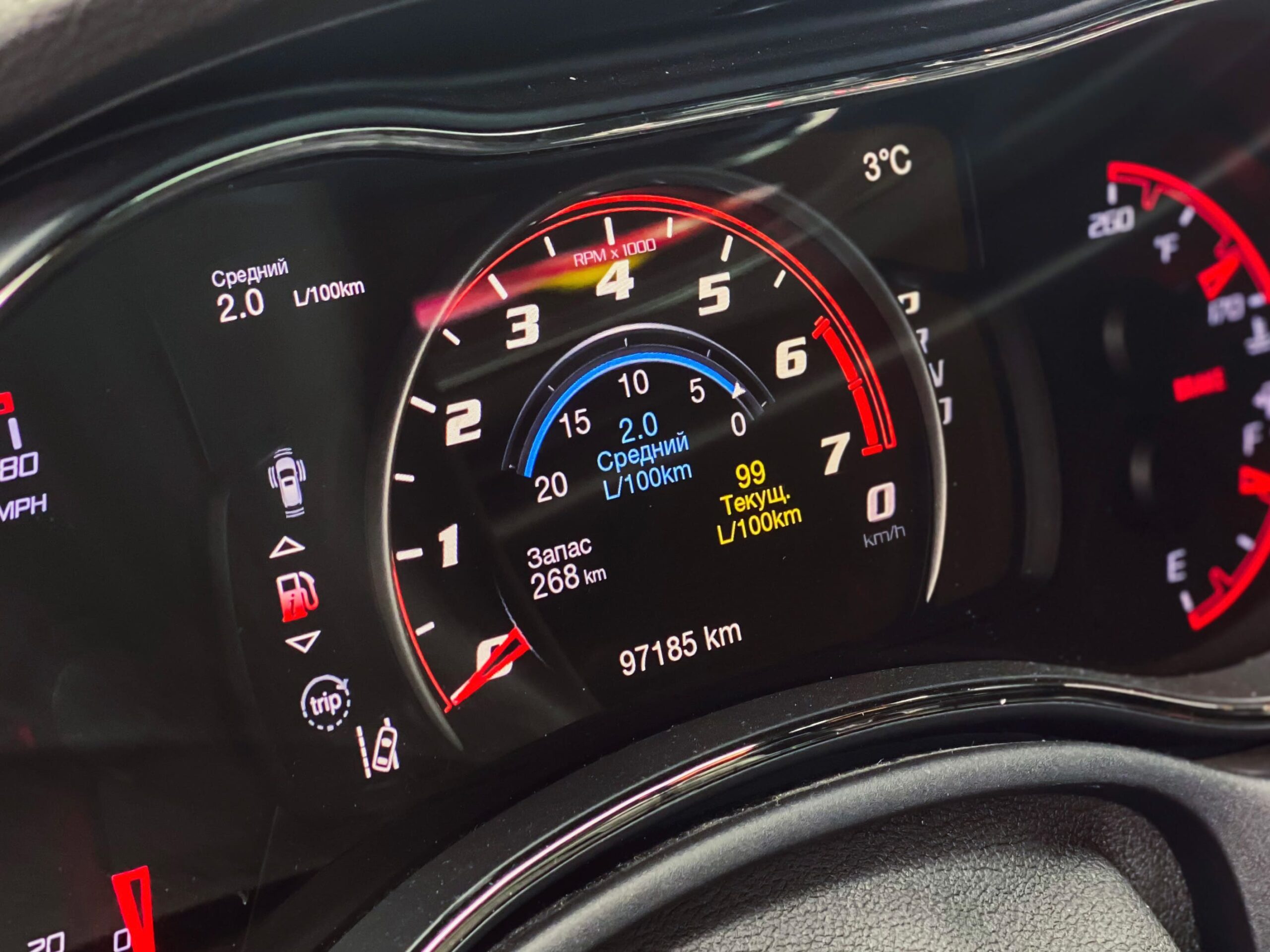 На приборной панели — крупный центральный дисплей, куда выводится масса полезной информации, и световые индикаторы температуры охлаждающей жидкости и запаса топлива.